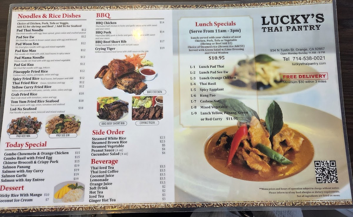 Overall, the food and drinks at Lucky’s Thai Pantry create a calm, approachable dining experience that fits well with the comfortable, simple vibe of the restaurant. It’s a place where familiar tastes and fresh ingredients come together to deliver one of those easy, enjoyable meals that can quickly become a routine favorite.